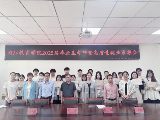 On the morning of May 29th, the International EducationSchoolsolemnly convened the 2025 Graduates Postgraduate Entrance Exam & High-Quality Employment Commendation Meeting in Conference Room A04-104. Attending the meeting were Zhou Yong, Secretary of the College Party Committee; Li Juan, Dean of the College; Liu Ya'na, Vice Dean of the College; Zhang Jiayang, Vice Dean of the School ofBiological Sciences; Dr. Li Peng; faculty members Chen Nan, Tang Lin, and Chang Chengcheng; and representatives of students admitted to postgraduate programs. The meeting was chaired by Liu Ya'na.