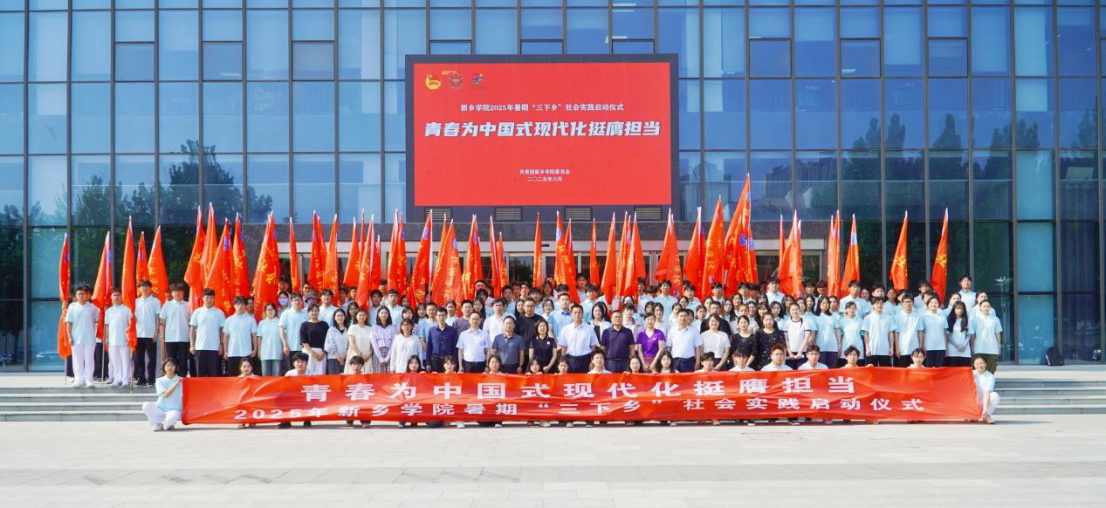 6月27日下午,新乡学院2025年暑期“三下乡”社会实践活动启动仪式在图书馆一楼文化艺术中心隆重举行。副校长韩辉、陈磊山,党委宣传部常务副部长苏辉,党委学工部部长、学生处处长王坤,校团委副书记毛戎,各学院领导老师、团委书记、实践团队指导老师及学生代表齐聚一堂,共同见证实践征程开启。仪式由校团委副书记李春春主持。
